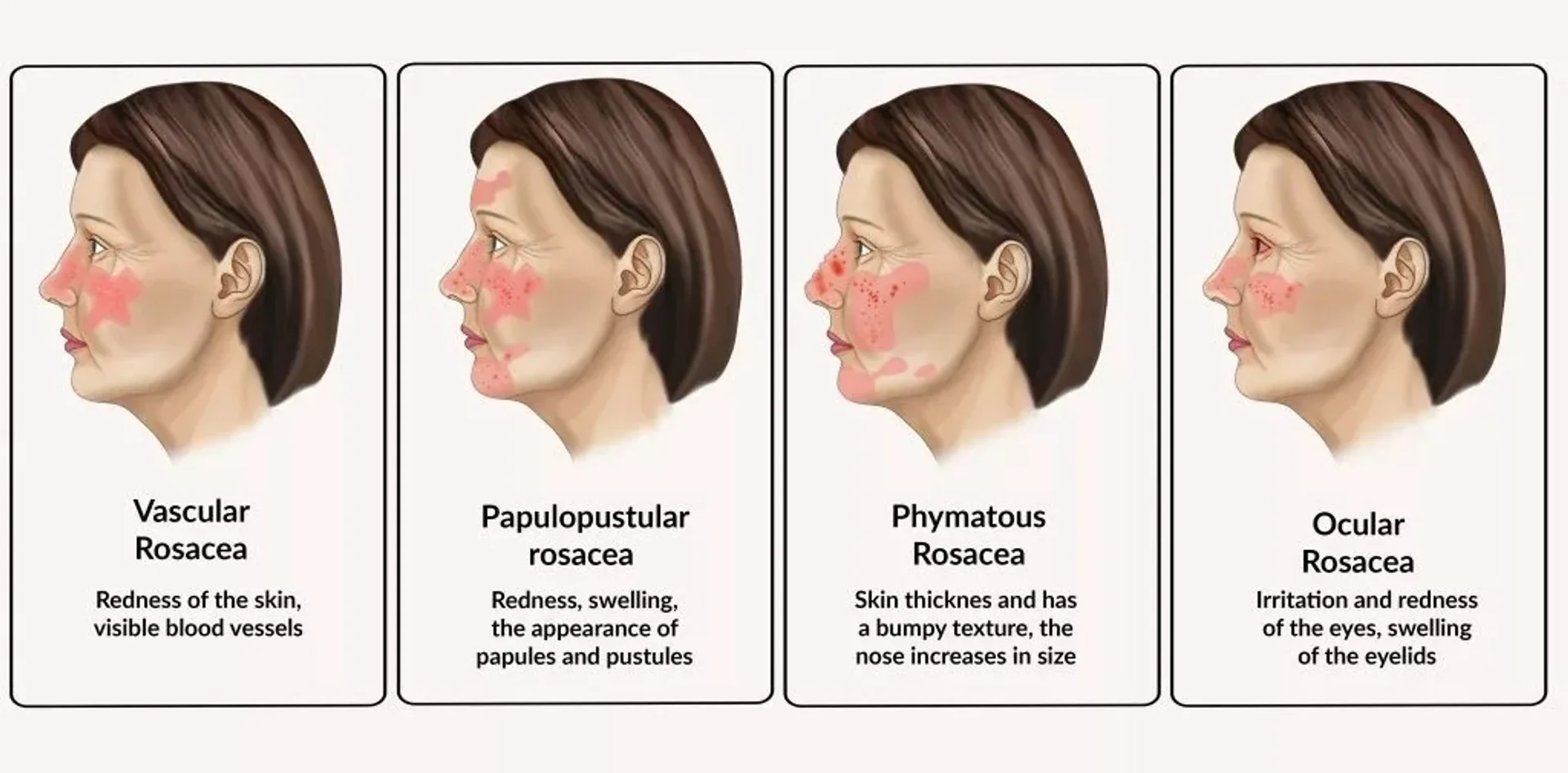 Rosazea kann in verschiedenen Formen auftreten, darunter:
